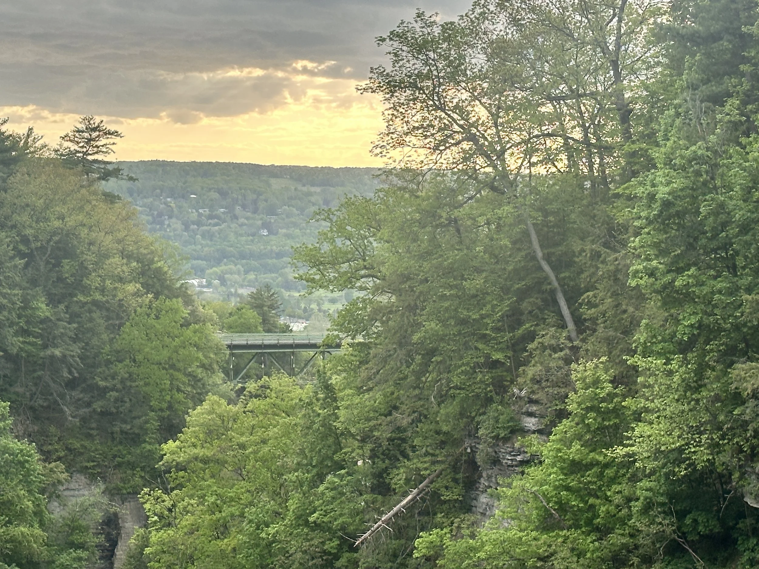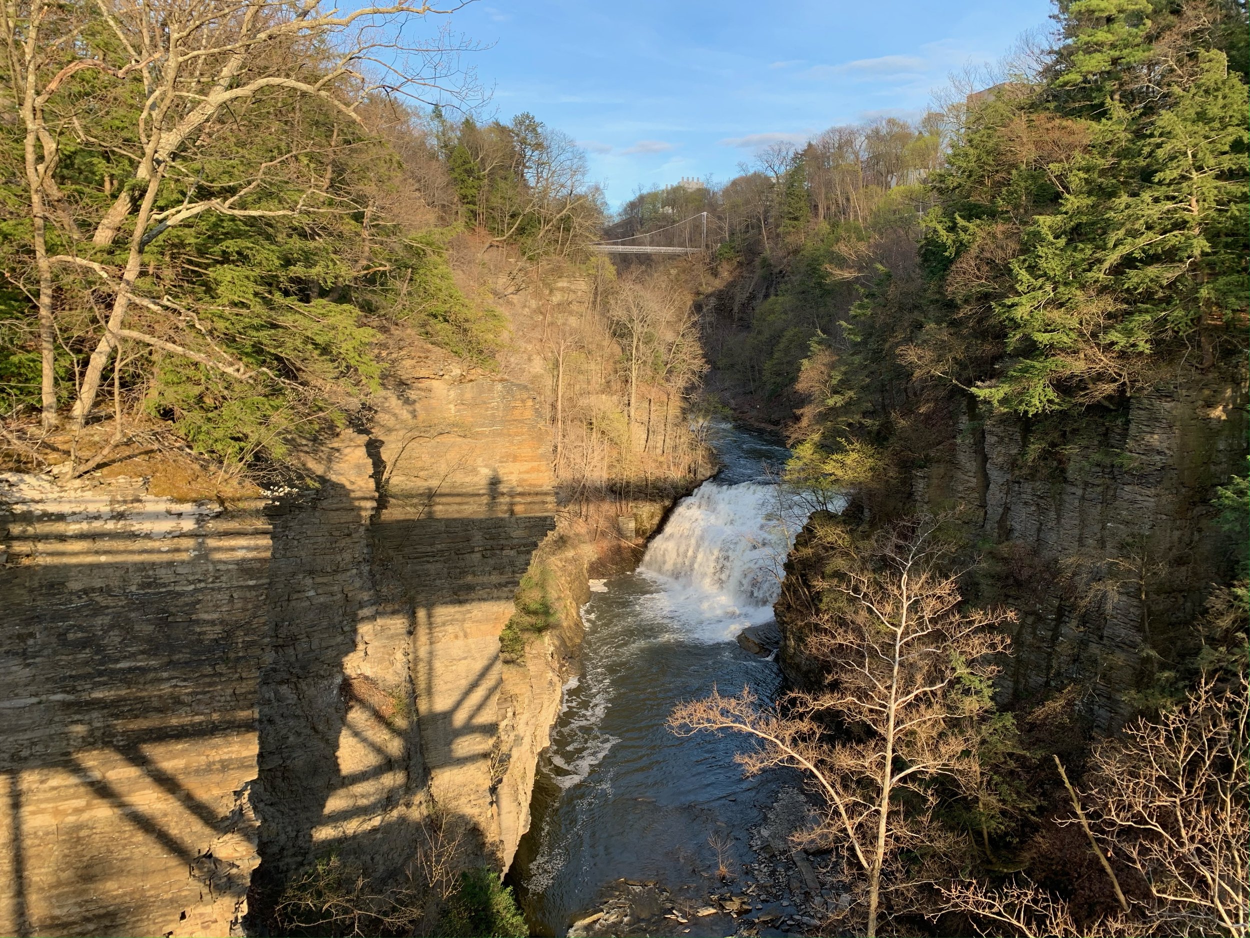 From the bridge, as you look ‘down’, you see the top of Ithaca Falls and, beyond it, Cayuga Lake. If you look ‘up’ - away from Cayuga Lake - you see Forest Falls. Unfortunately, Forest Falls is now inaccessible due to deaths that occurred there.