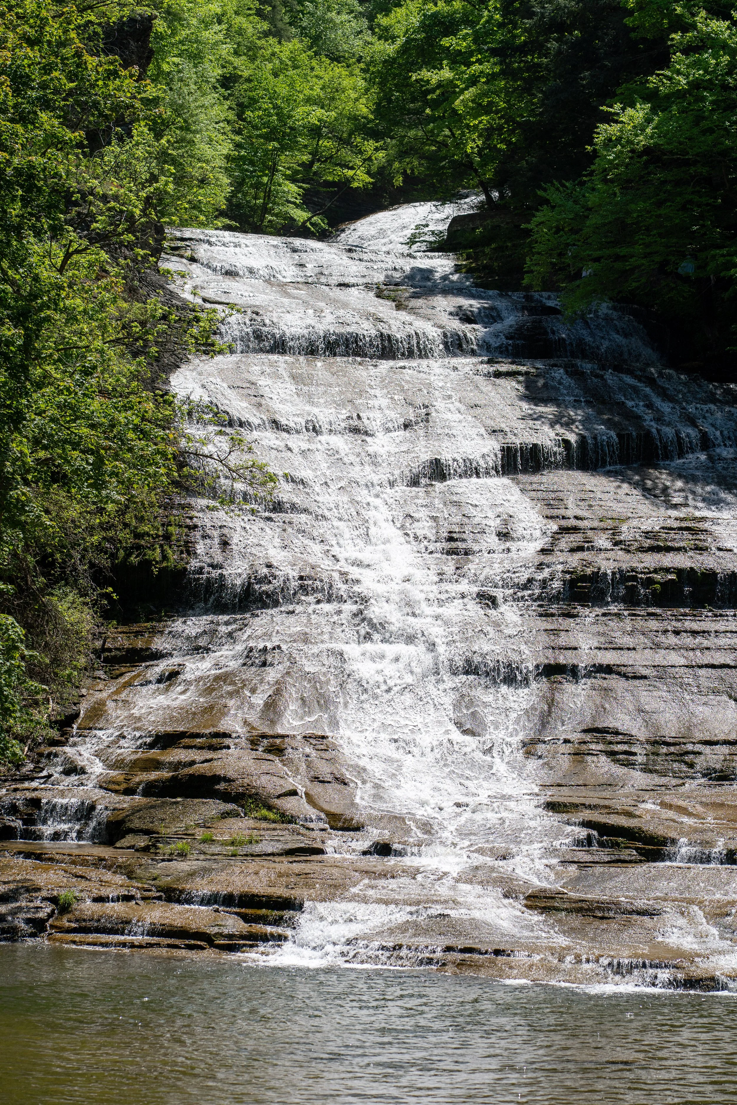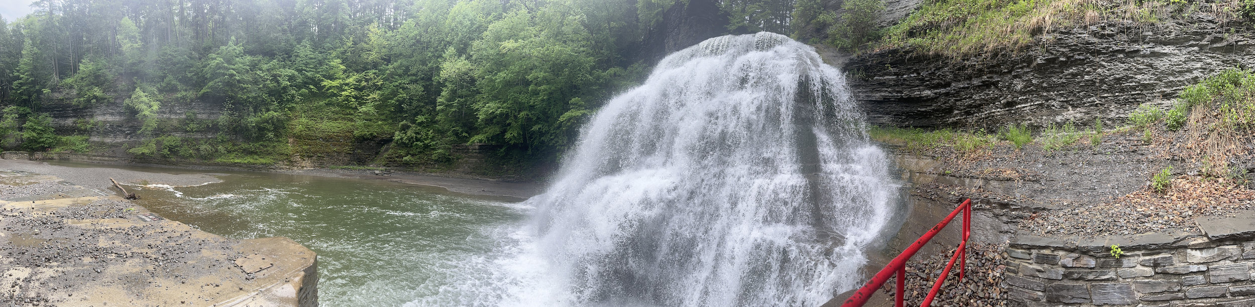 The splash pool and creek just below the falls are a popular spot for fishing. The area around the base of the falls was owned by Cornell University before being sold to the City of Ithaca in 2000 as a part of environmental cleanup. A house near the base was razed, and a park added, which allows for a short (and, some say, steep) hike to get a closer look. On this trip, we didn’t… there were too many other waterfalls to see.